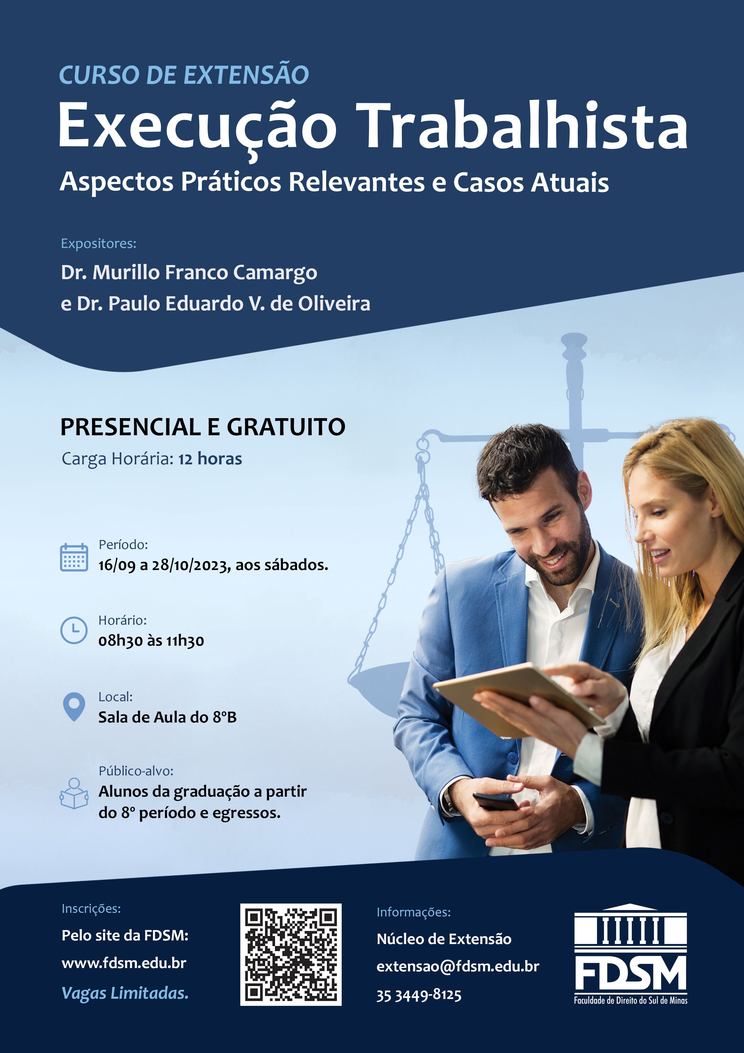Inscrições abertas para o Curso presencial "Execução Trabalhista - Aspectos Práticos Relevantes e Casos Complexos Atuais" sob a coordenação do Juiz do TRT da 3ª Região, Dr. Murillo Franco Camargo.