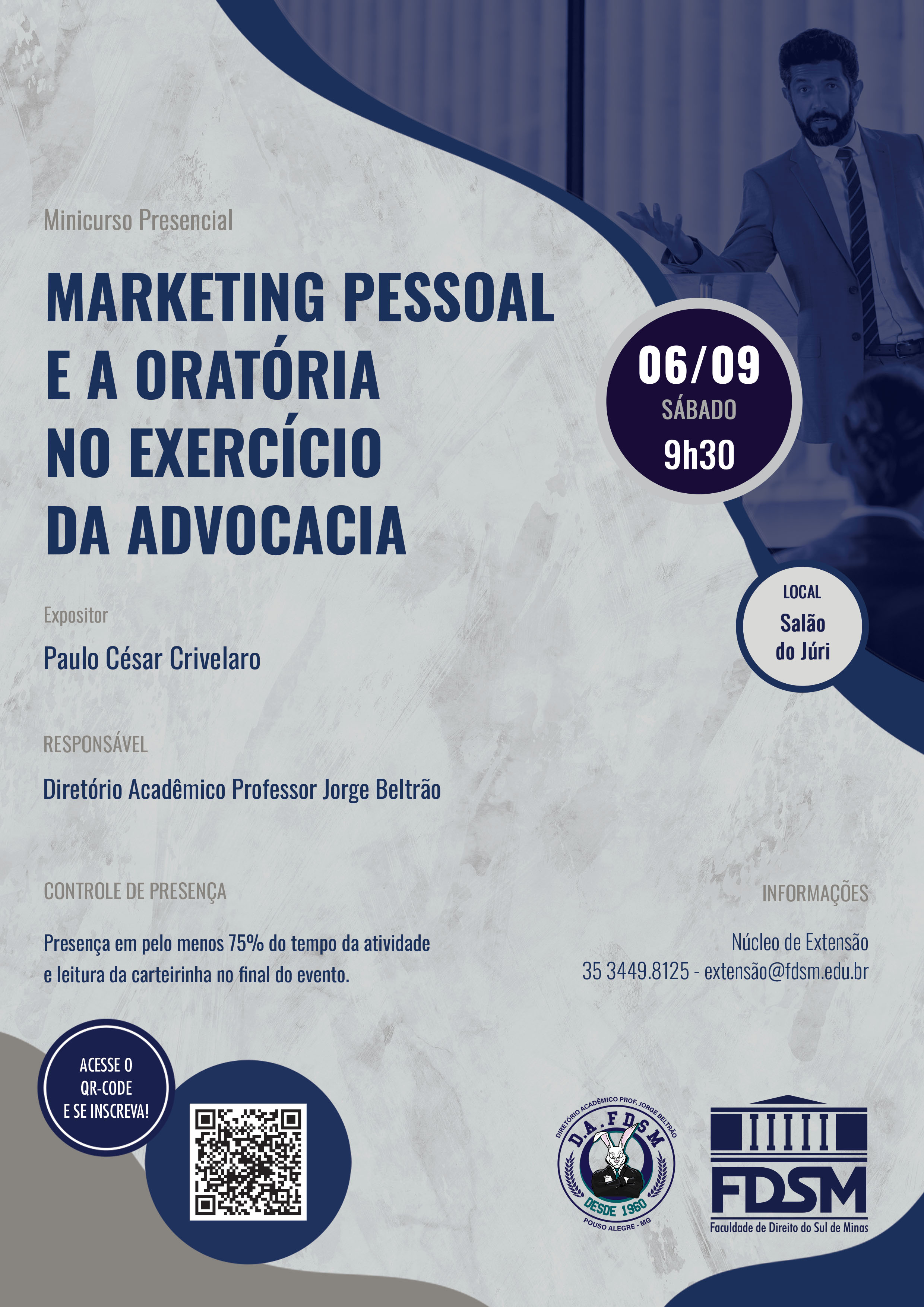 MINICURSO PRESENCIAL "MARKETING PESSOAL E A ORATÓRIA NO EXERCÍCIO DA ADVOCACIA".