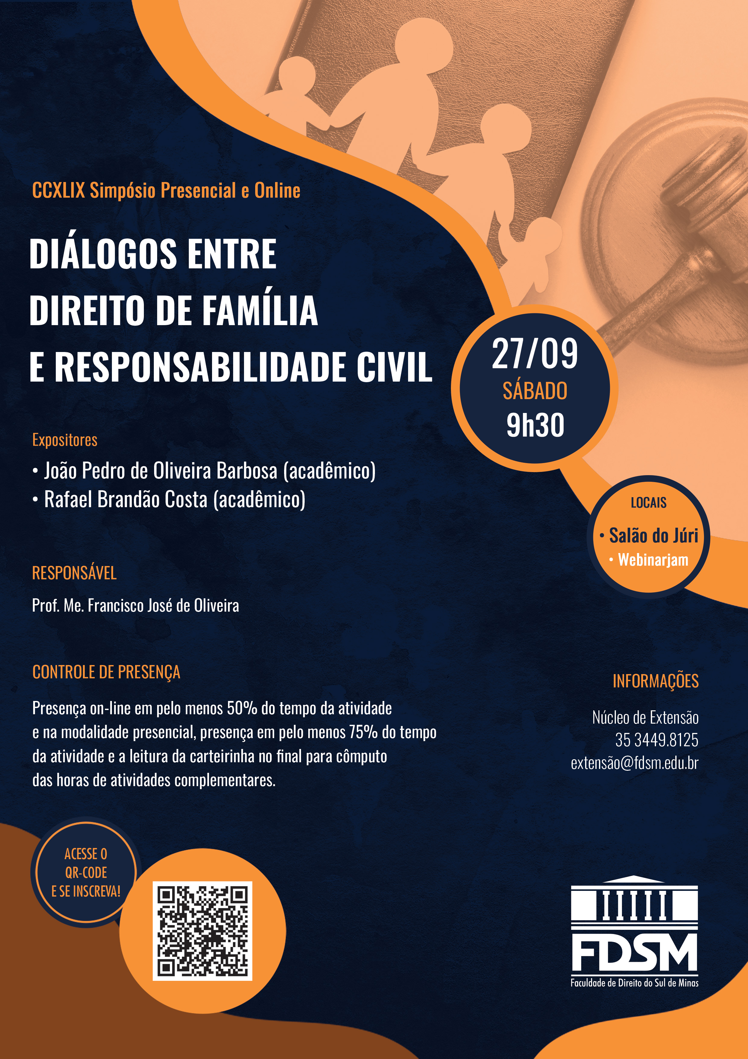 Inscrições abertas para o CCXLIX Simpósio com o tema "Diálogos entre Direito de Família e Responsabilidade Civil", sob a coordenação do Professor Mestre Francisco José de Oliveira.