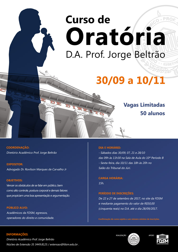 Inscrições abertas para o Curso de Oratória promovido pelo