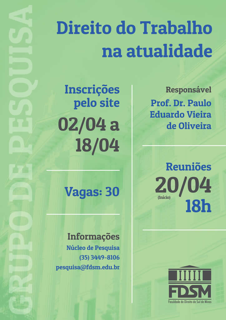 Inscrições abertas para o Grupo de Pesquisa com o tema: "Direito do Trabalho na atualidade".