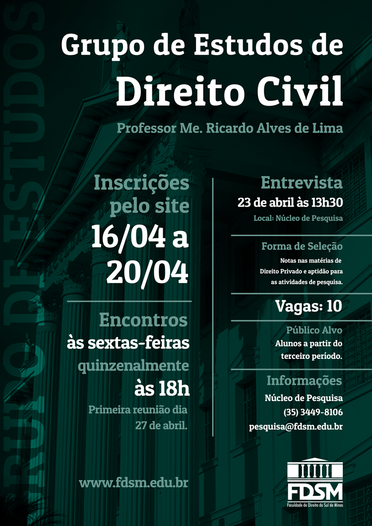 Inscrições abertas para o Grupo de Estudos de Direito Civil.