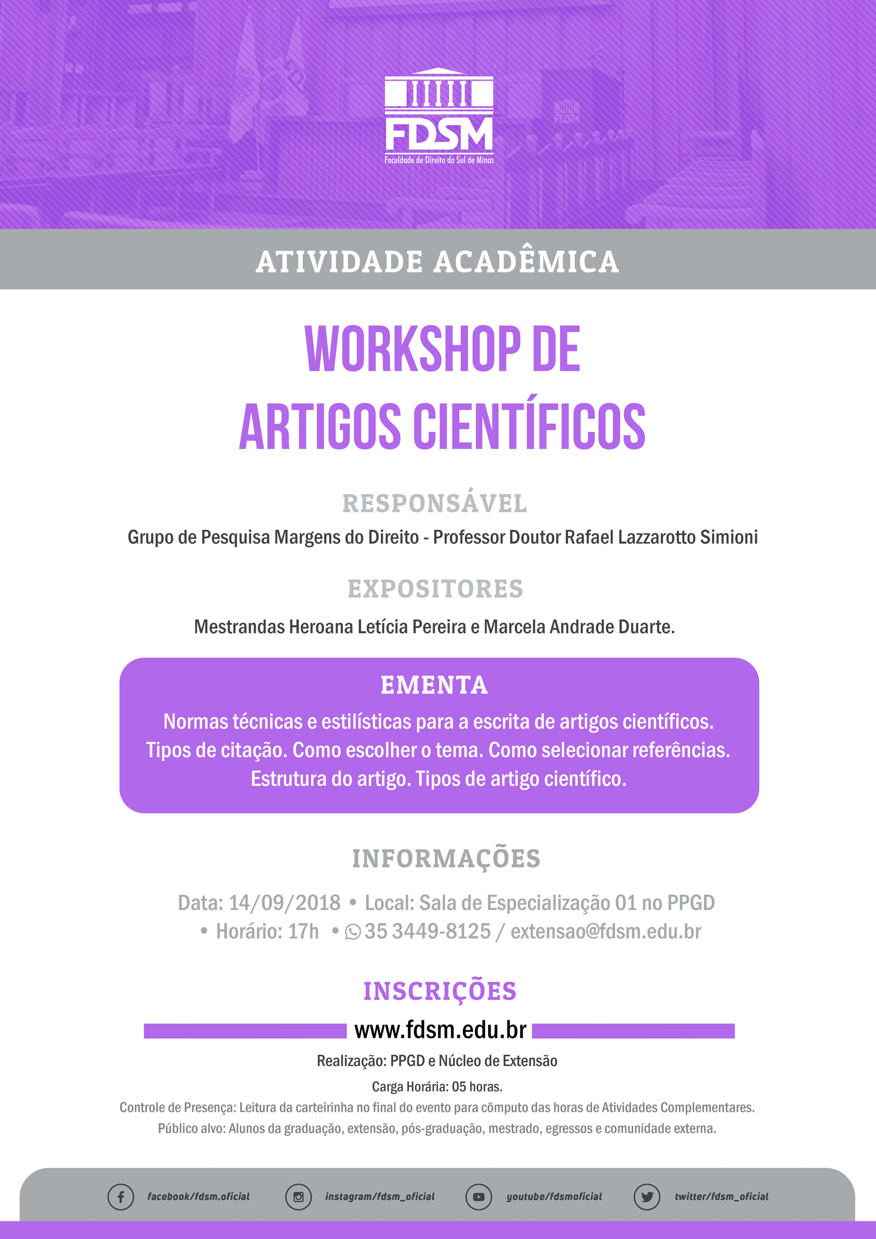 Inscrições abertas para o Workshop de Artigos Científicos sob a coordenação do Professor Doutor Rafael Lazzarotto Simioni.