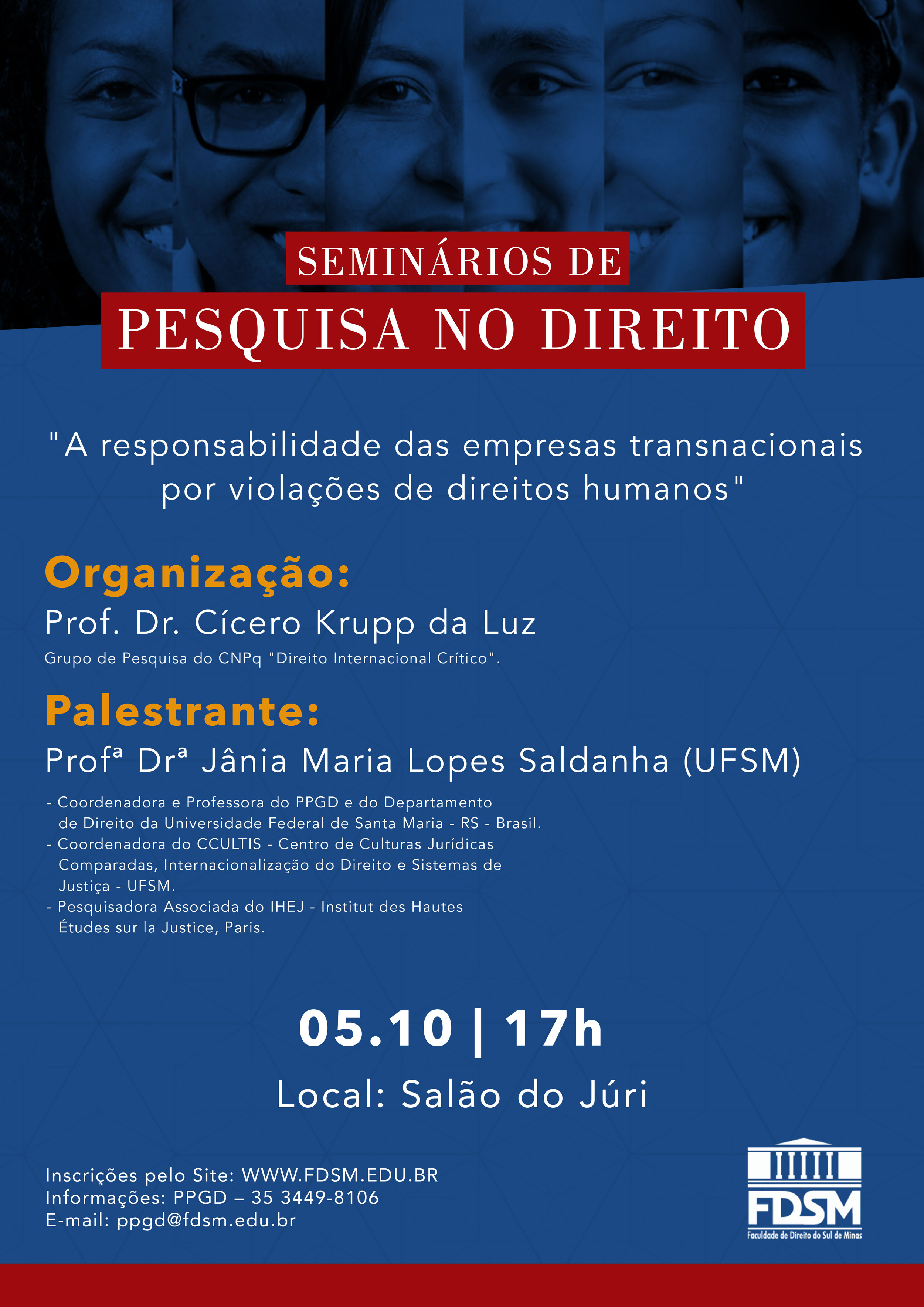 Inscrições abertas para o Seminários de Pesquisa no Direito: " A responsabilidade das empresas transnacionais por violações de direitos humanos", organizado pelo Prof. Dr. Cícero Krupp da Luz - Grupo de Pesquisa do CNPq "Direito Internacional Crítico".