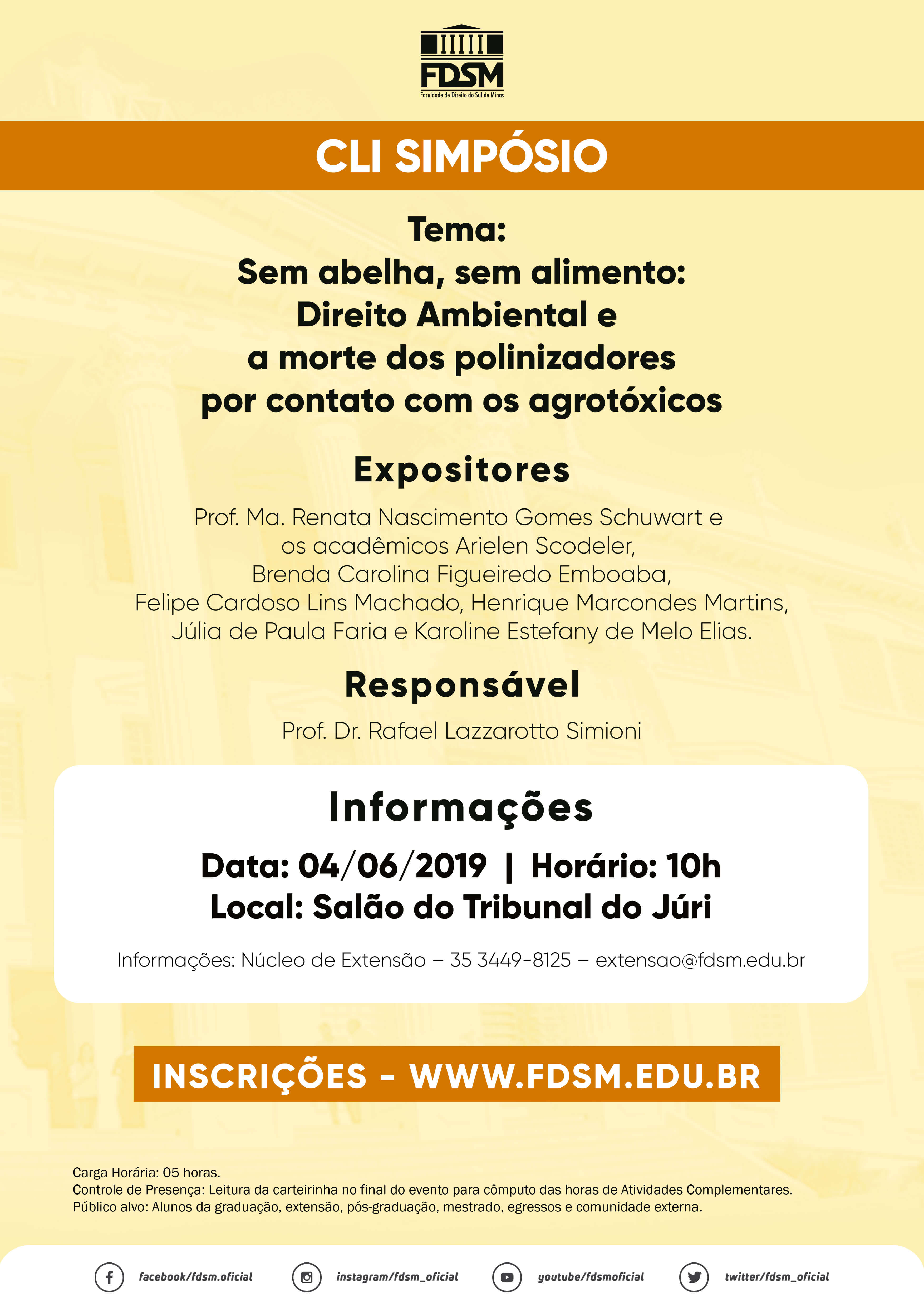 Inscrições abertas para o CLI Simpósio intitulado "Sem abelha, sem alimento: Direito Ambiental e a morte dos polinizadores por contato com os agrotóxicos" sob a coordenação do Professor Dr. Rafael Lazzarotto Simioni.
