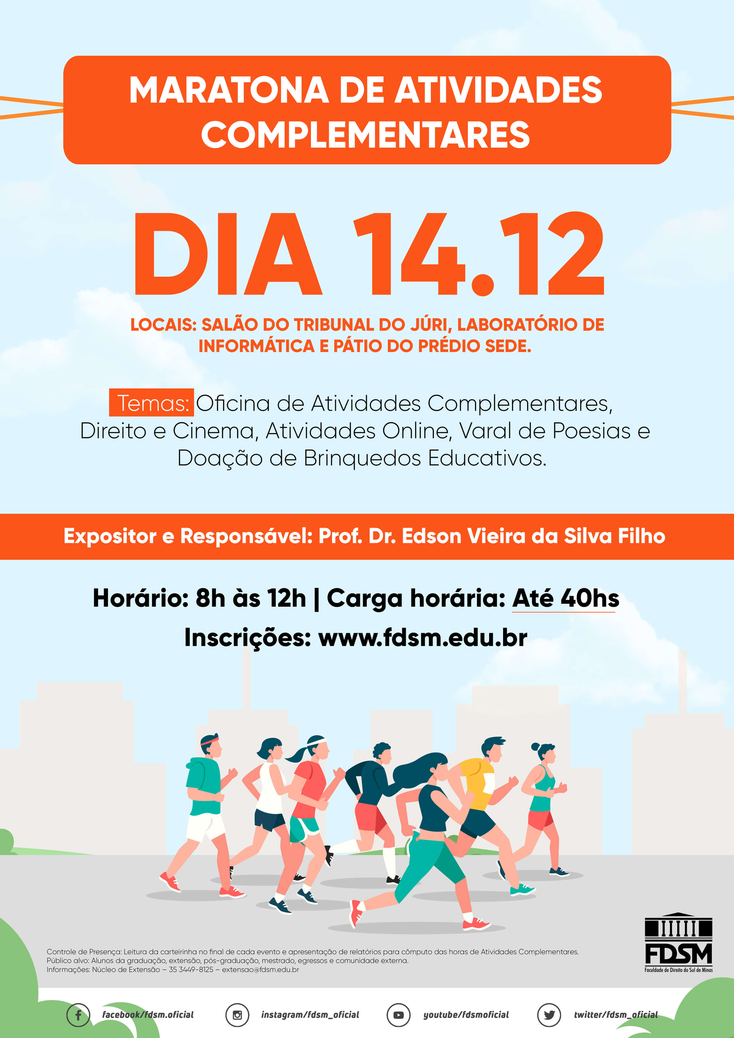 Inscrições abertas para a Maratona de Atividades Complementares sob a coordenação do Professor Doutor Edson Vieira da Silva Filho.