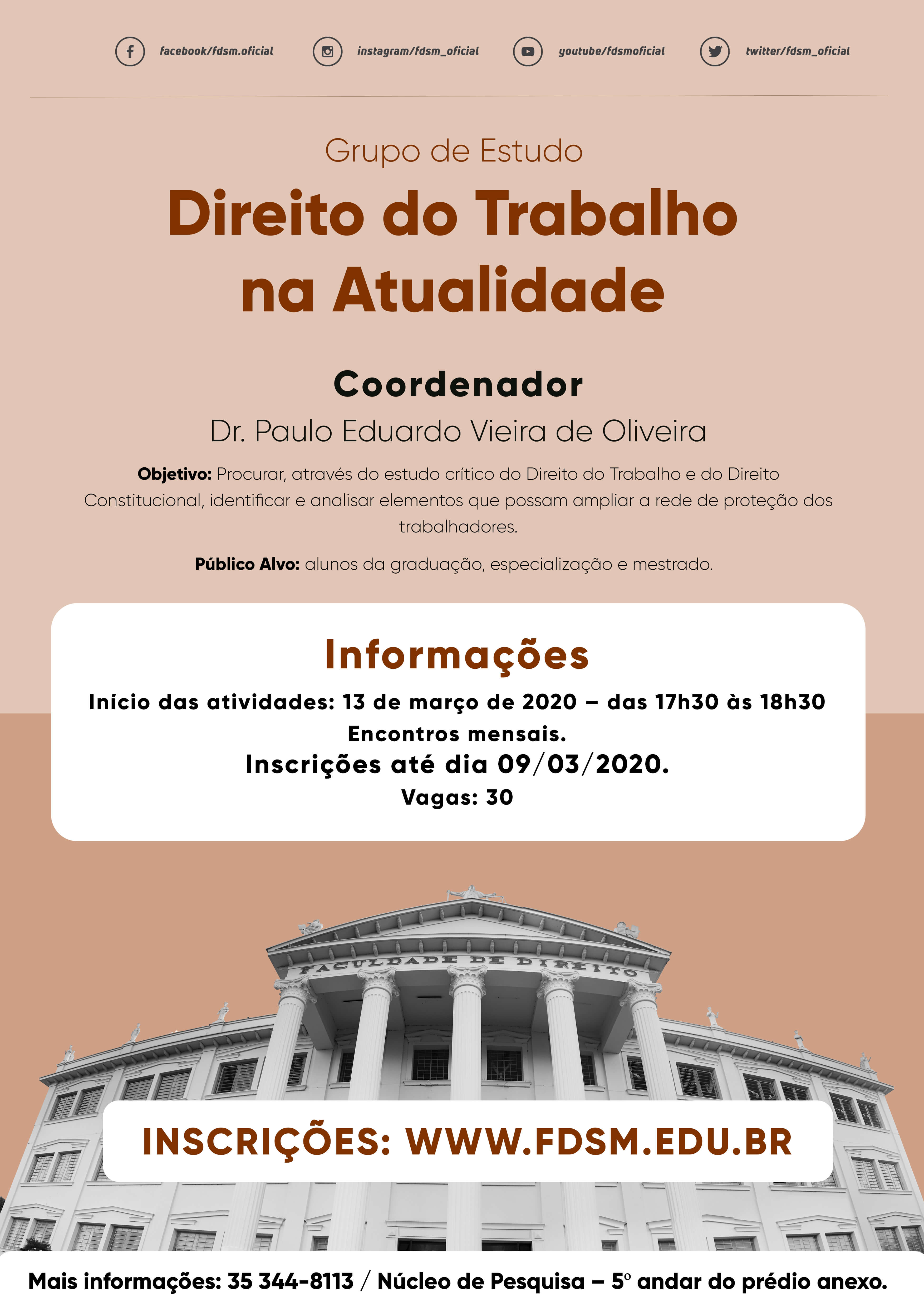 Mais Informações: 35 3449-8106 / pesquisa@fdsm.edu.br