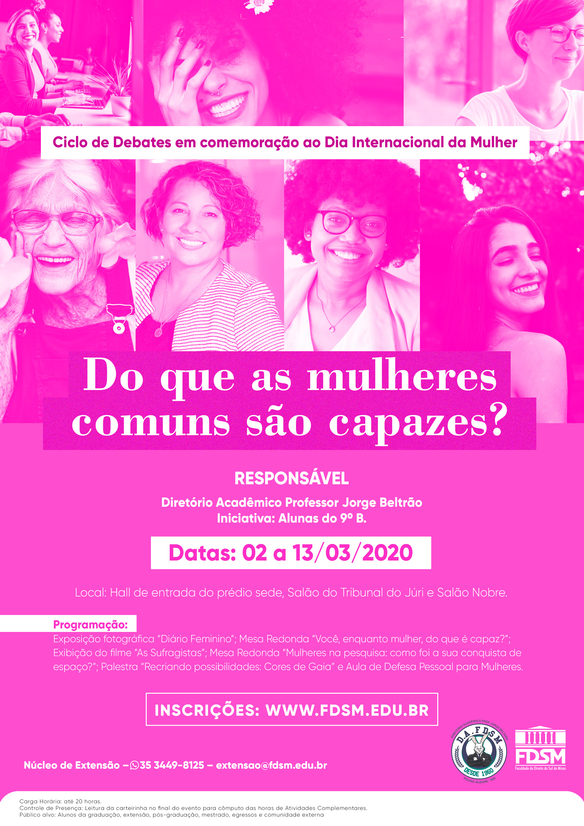 Inscrições abertas para o Ciclo de Debates "Do que as mulheres comuns são capazes? " sob a coordenação do Diretório Acadêmico Professor Jorge Beltrão.