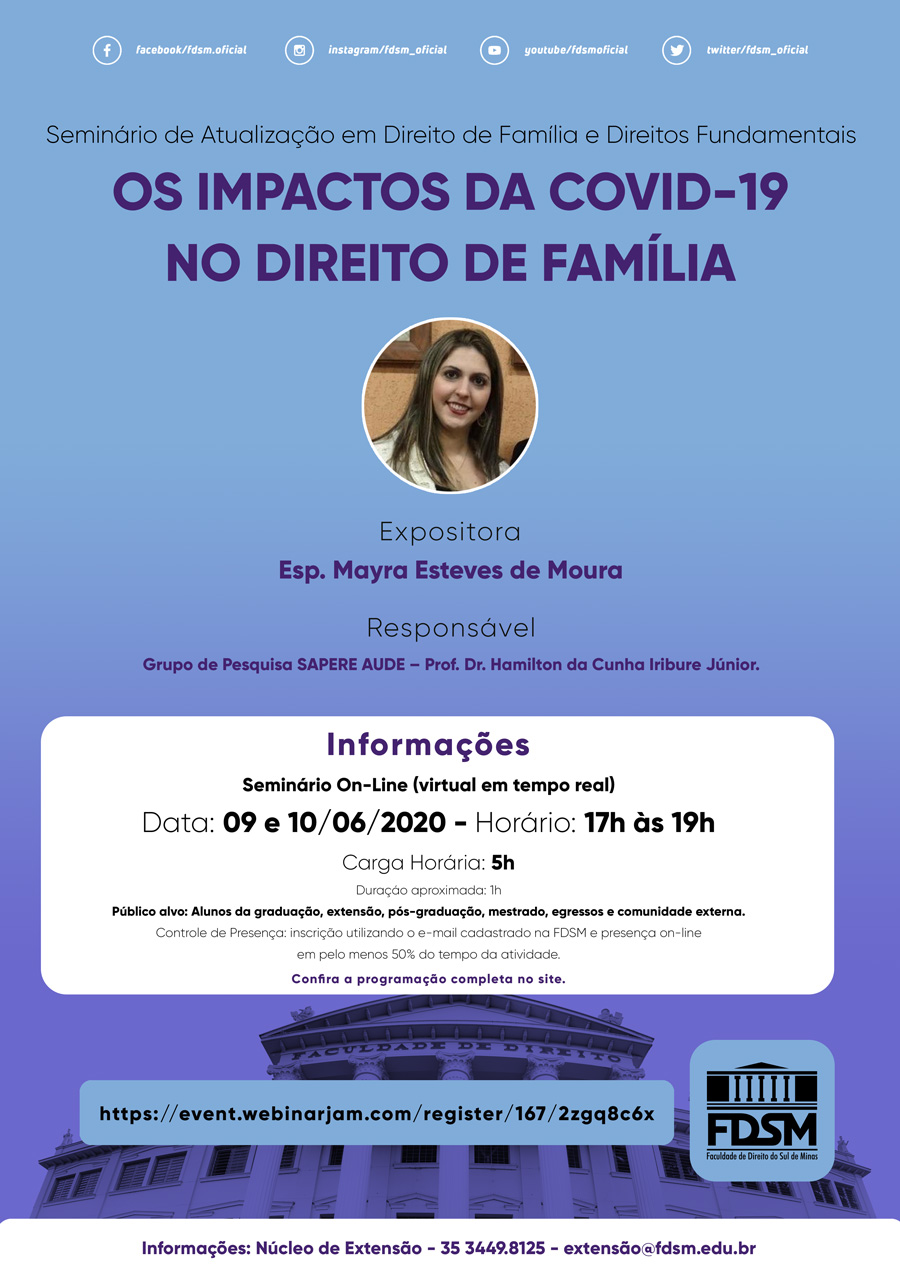 SEMINÁRIO DE ATUALIZAÇÃO EM DIREITO DE FAMÍLIA E DIREITOS FUNDAMENTAIS ON-LINE COM O TEMA OS IMPACTOS DA COVID-19 NO DIREITO DE FAMÍLIA