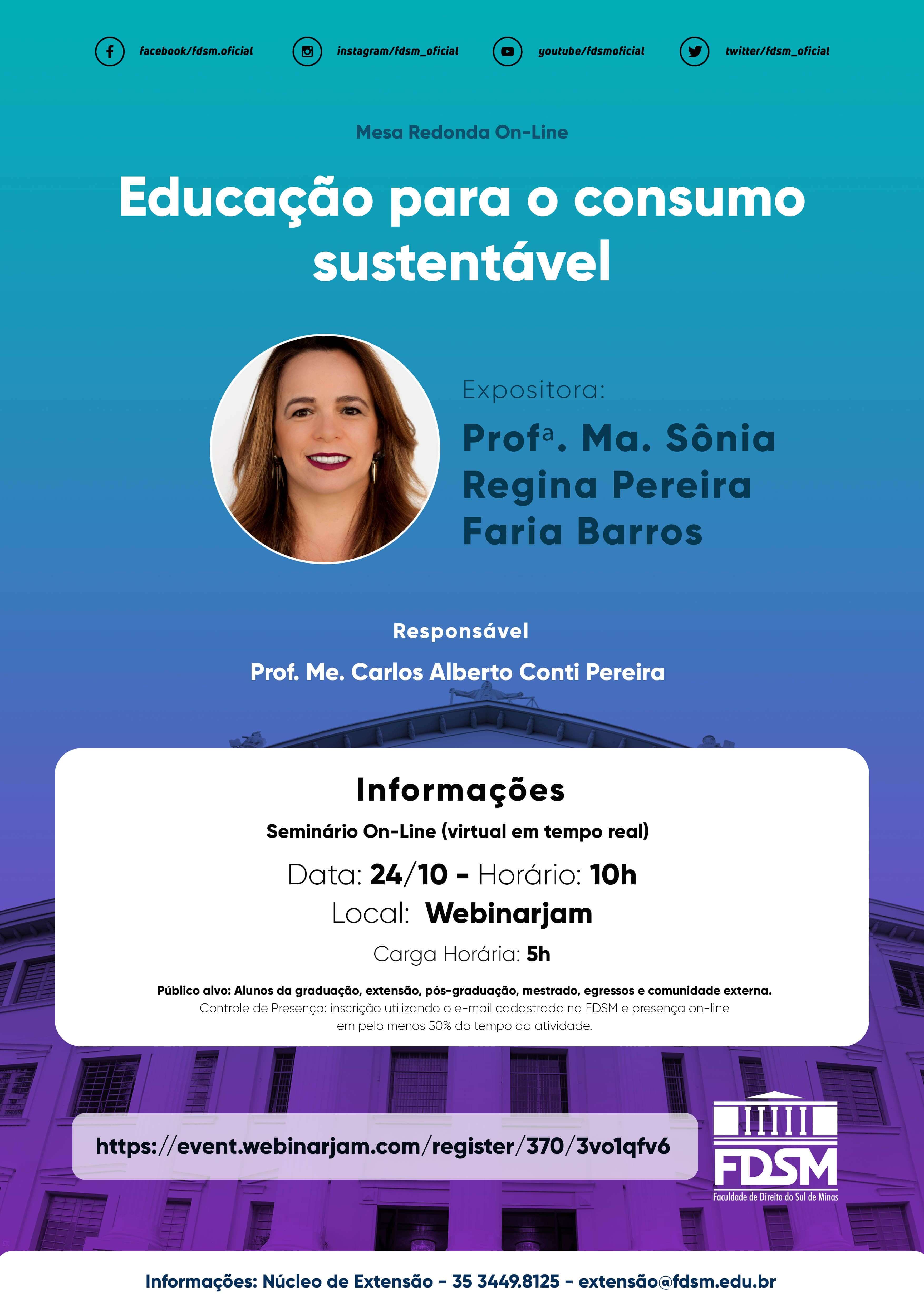 Inscrições abertas para a Mesa Redonda on-line com o tema "Educação para o consumo sustentável" sob a coordenação do Professor Mestre Carlos Alberto Conti Pereira.