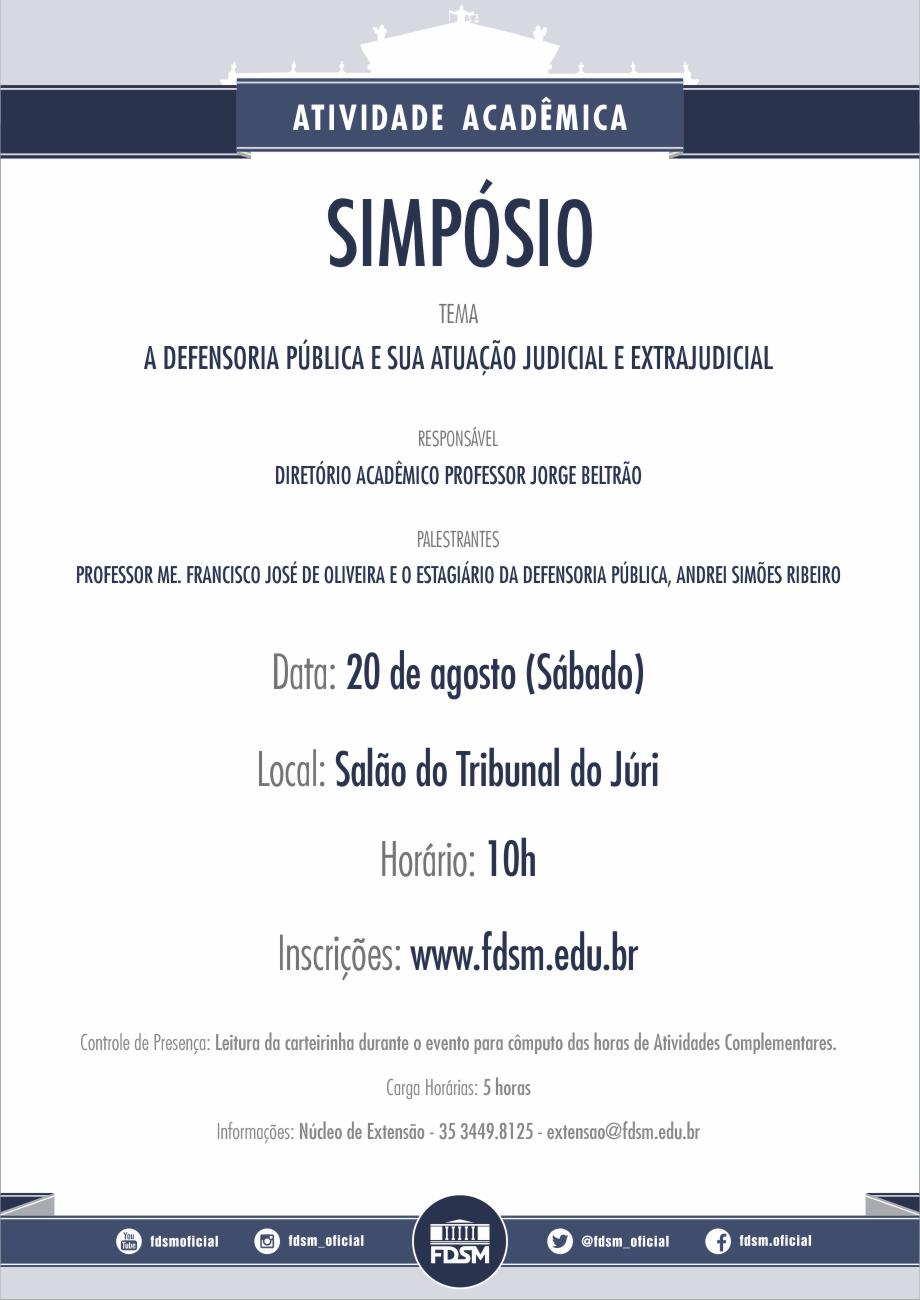 Inscrições abertas para o Simpósio com o tema "A Defensoria Pública e sua Atuação Judicial e Extrajudicial", sob a coordenação do Diretório Acadêmico Professor Jorge Beltrão.