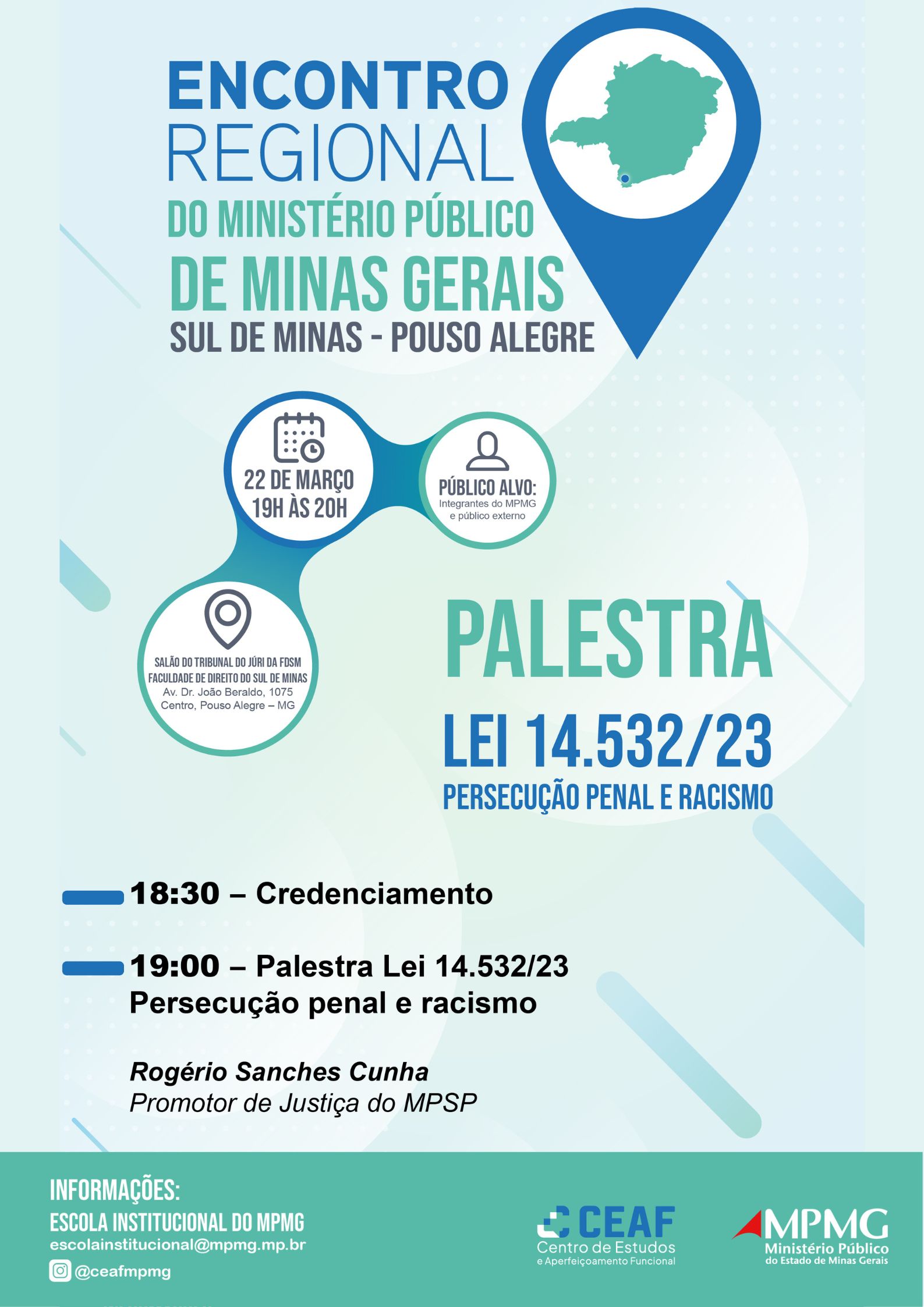 Informações: Escola Institucional do MPMG / escolainstitucional@mpmg.mp.br