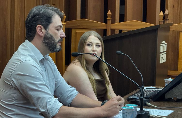 O gestor do PPGD, Prof. Dr. Rafael Simioni e a mestranda Gabrielle Leal Pinto.