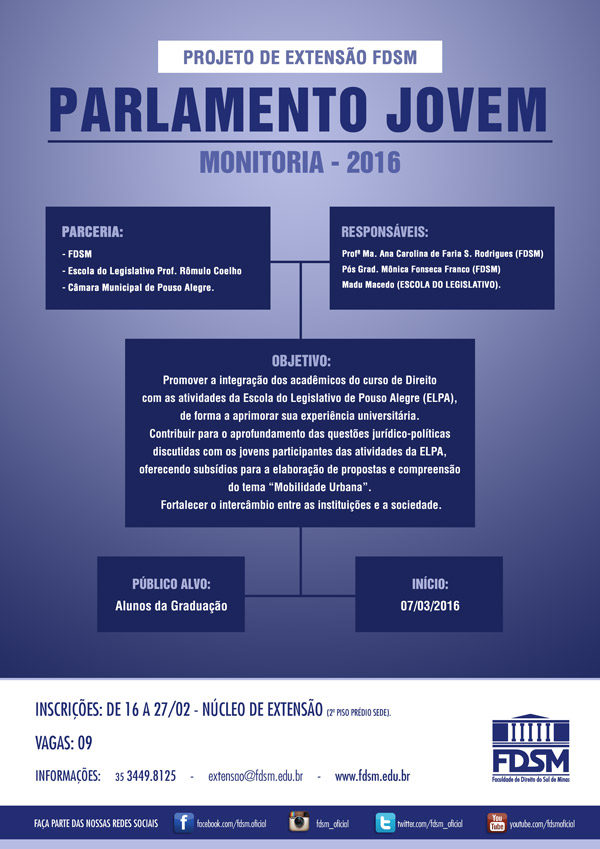 PROJETO DE EXTENSÃO: MONITORIA DO PARLAMENTO JOVEM 2016.