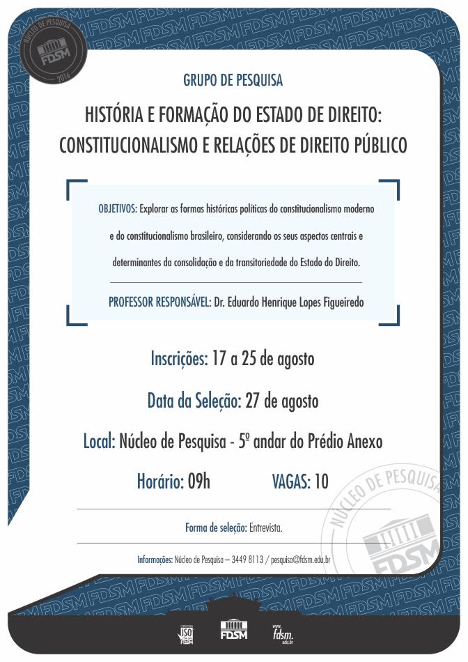 17/08/2016 às 16:21TEMA: História e Formatação do Estado de Direito: Constitucionalismo e Relações de Direito Público .