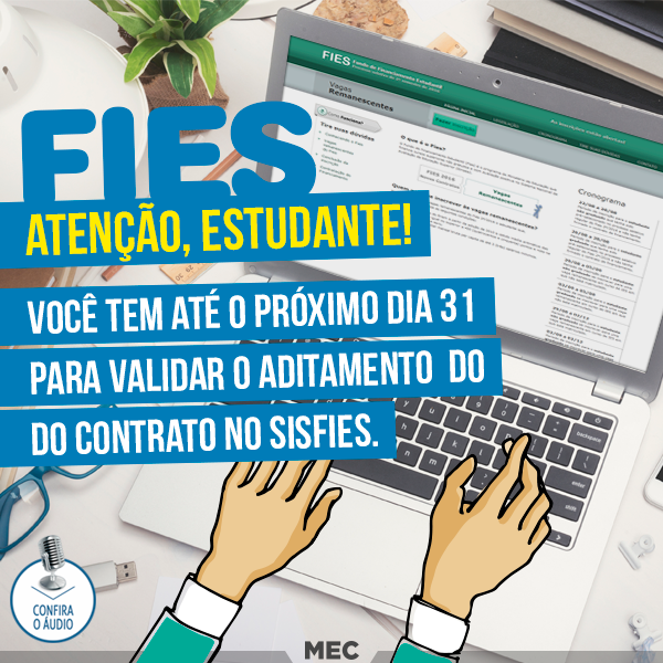 Ressaltamos que o aditamento (indispensável para manutenção do FIES) é de INTEIRA RESPONSABILIDADE DO ALUNO. Ou seja, caso não seja feito no prazo estabelecido pelo MEC, poderá resultar em cancelamento do benefício.