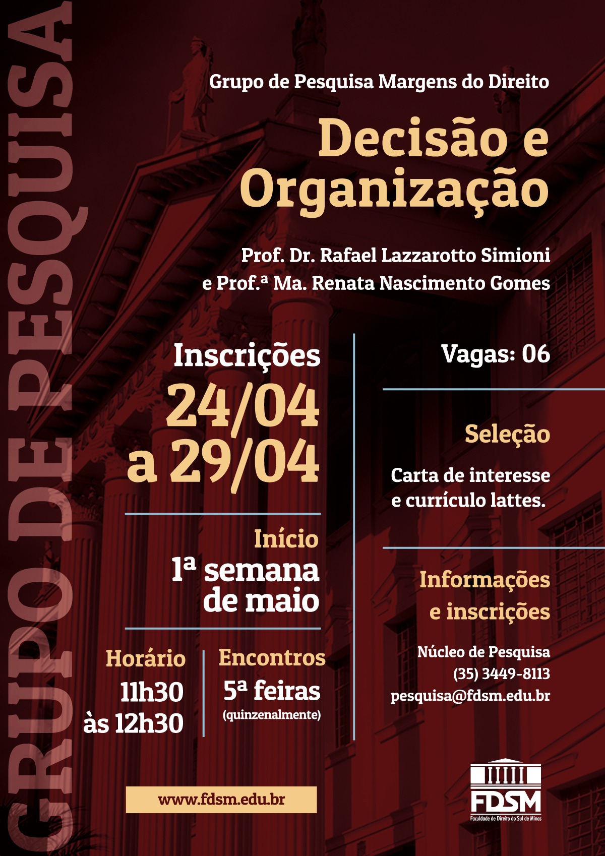 Informações: Núcleo de Pesquisa – 35 3449-8113 – pesquisa@fdsm.edu.br