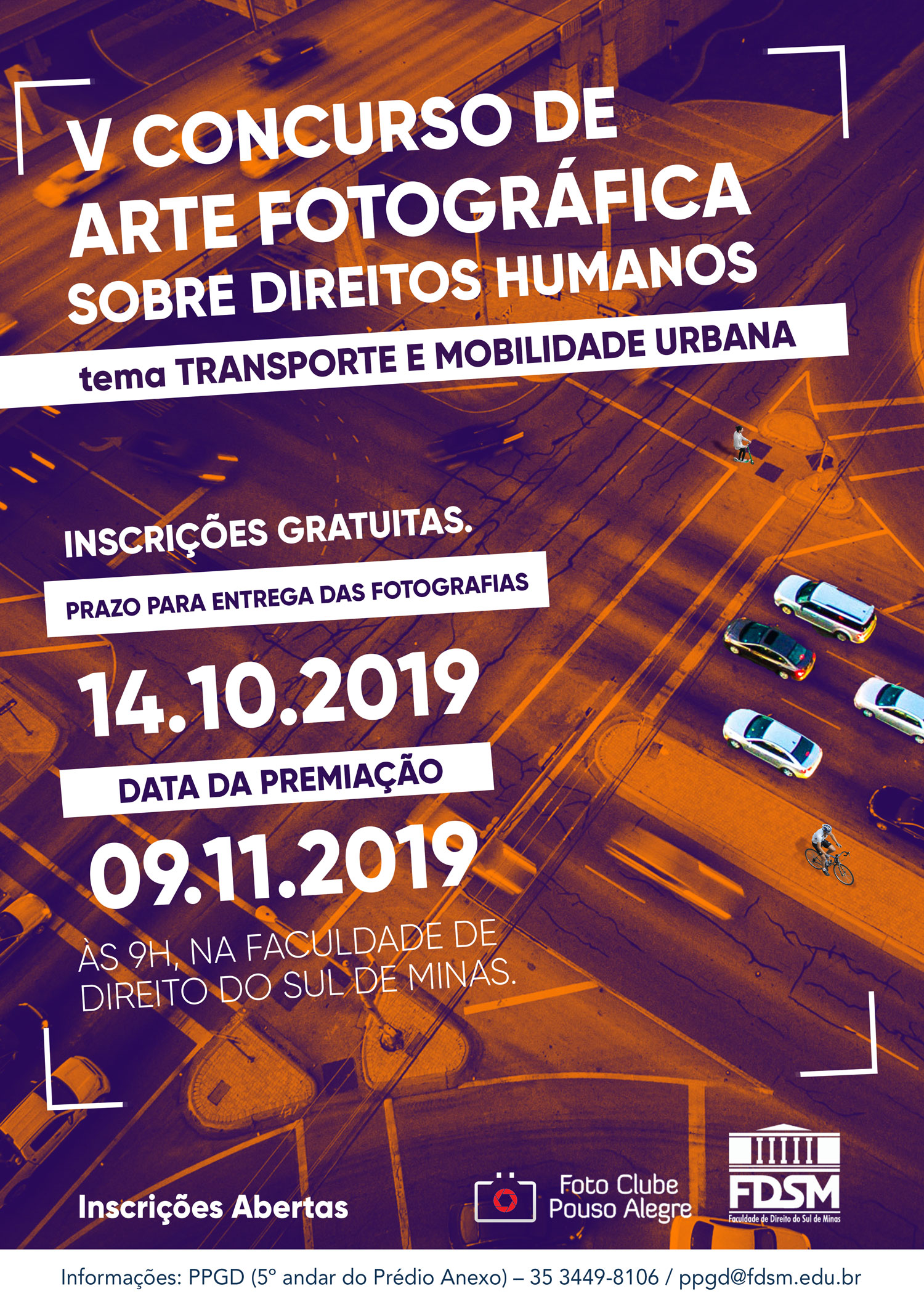 24/06/2019 às 18:19Estão abertas as inscrições para o V Concurso de Arte Fotográfica sobre Direitos Humanos do Programa de Pós-Graduação em Direito da FDSM. Neste ano a temática é "Transporte e Mobilidade Urbana", com as diversas conexões de sentido que a noção de liberdade de circulação propicia na contemporaneidade.