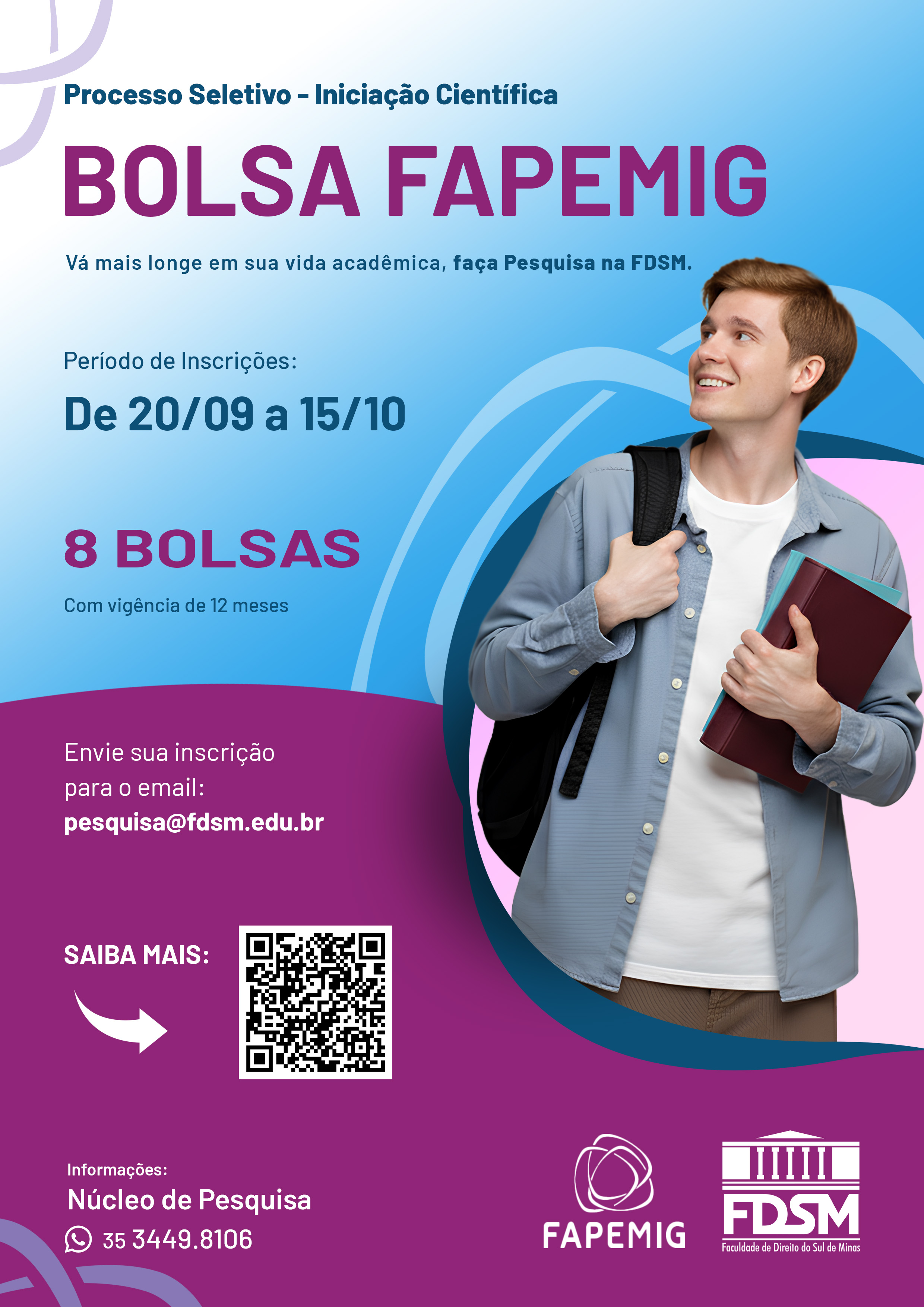 Informações: Núcleo de Pesquisa – Whatsapp 35 3449-8106 / pesquisa@fdsm.edu.br