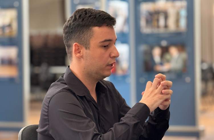 O aluno Luiz Felipe Fagundes Rezende em sua apresentação.