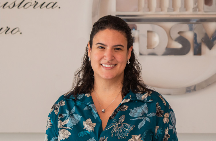 A Profª Ma. Ana Carolina de Faria Silvestre, gestora de Relações Interinstitucionais e do Núcleo de Extensão da FDSM.